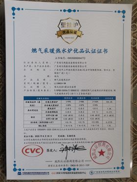 燃?xì)獠膳療崴疇t優(yōu)品認(rèn)證證書(shū)