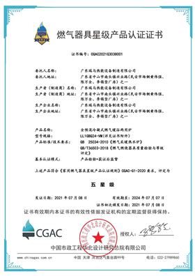 燃?xì)馄骶咝羌壆a(chǎn)品認(rèn)證證書